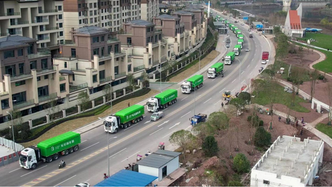“万达开川渝统筹发展示范区绿电交通项目”作为全国首组省际干线换电重卡运输项目,也是首个跨省运输场景下的应用模式创新,实现了“政府引导、企业为主、市场主导、区域协同”的示范性作用。在上汽红岩杰虎H6充换电一体纯电动牵引车的助力下,万达开川渝统筹发展示范区开启了150KM运输路线的纯电运营,预计将在2023年减少碳排放量20000吨,以实际行动践行我国“双碳”目标,助推“双城经济圈”绿色运输迈入新阶段。