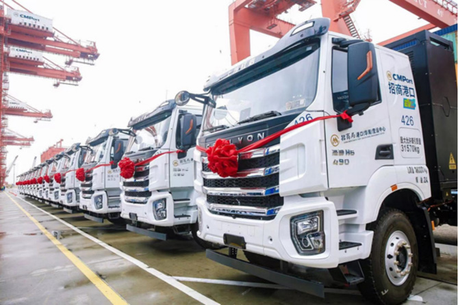 上汽红岩在新能源领域一直不遗余力上下探索。2023年上汽红岩动作频频,不仅在今年1月向招商港口交付了66台新能源重卡,其与国家电投、东然新能源三方联合开展的“万达开川渝统筹发展示范区绿电交通项目”也正式投入运行。