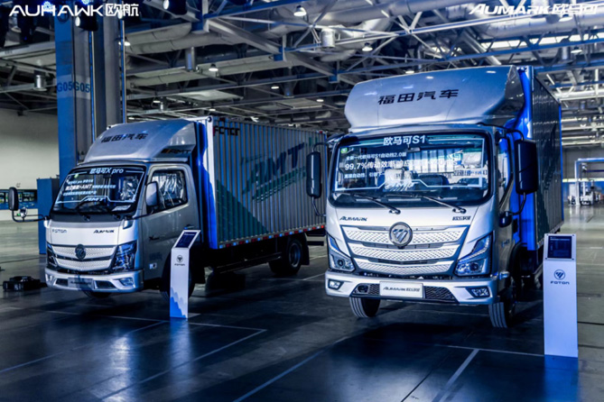 【现场展示的欧马可自动挡轻卡】