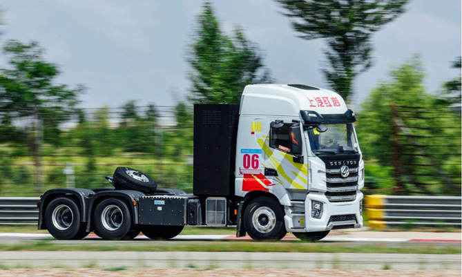 长达一小时的耐力赛,考验的不仅是车手的专注,更是对参赛车辆在高强度的行驶状态下,动力性、持久性、安全性、可靠性的全方位大考。红岩杰狮H6氢能重卡兼具功率大、动力强、续航长三大优势,配备了127kW·h宁德时代动力电池,搭载额定230kW,峰值360kW电机,可输出490Ps的澎湃动力,最大扭矩2800N·m,强劲的动力配置让车辆能从容应对赛道之外不同工况场景带来的挑战。