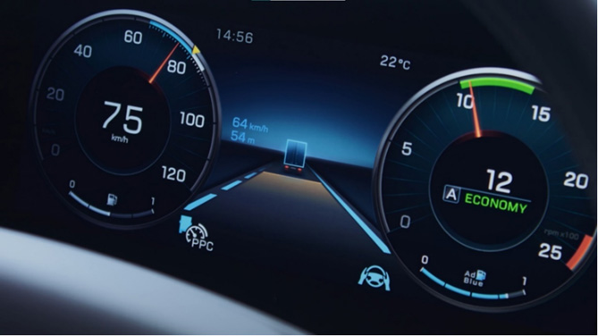 作为全球首款量产L2级主动驾驶辅助系统,ADA 2第二代主动驾驶辅助系统可谓“大显身手”,现场试驾车辆可以实现全速域的横向和纵向控制,以及脱手检测和自动紧急停车,该功能的核心逻辑完全由梅赛德斯-奔驰卡车自研完成,由安全中枢(VRDU)进行统一控制,这就可以保证该高阶功能与基础安全功能完美结合。例如,纵向控制在保证安全的基础上,集成了发动机制动和缓速器两种无磨损制动,以及可以带来良好节油效果的PPC动力系统预见性巡航;横向控制则会自动激活脱手检测,帮助驾驶员在缓解疲劳的基础上集中注意力,在特殊情况下实现自动安全停车,并自动落下HOLD制动,解锁车门,打开双闪,让客户一步解锁舒适无忧的驾乘之旅。