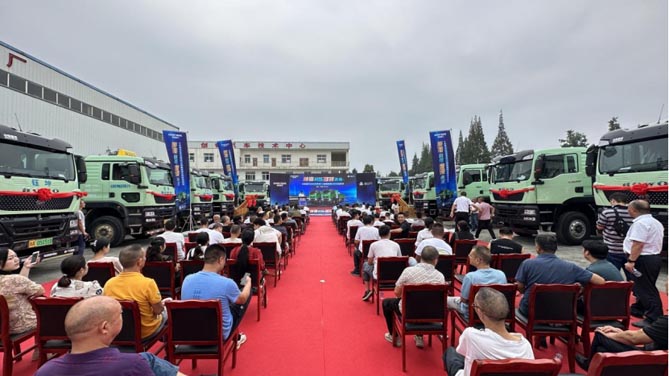 来自成都地区的驾驶员、运输公司、物流公司齐聚一堂,共同见证专为城建渣土市场打造的高端产品的成功交付。100辆豪沃TX新能源渣土车的交付,既是各方强强联合,迈出优势互补的一步,也是积极拥抱财富机遇、领跑运输行业绿色转型高质量发展的一步。