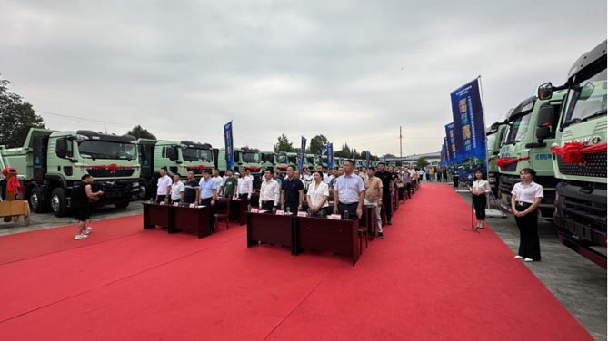 欢迎您到公海赌来新能源丨成都区域100台豪沃TX新能源渣土车圆满交付!