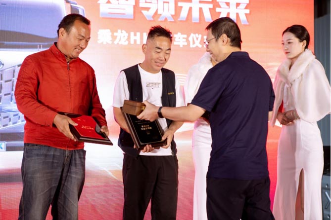 在交车仪式中,乘龙HK研发首席师亲临现场,将象征着尊贵与荣耀的乘龙HK“王者体验官”聘书授予首批车主。“王者体验官”拥有十大权益,能够为他们的运输事业提供更多支持与保障。此外,乘龙还精心准备了交车大礼包,感谢他们的支持与信任。
