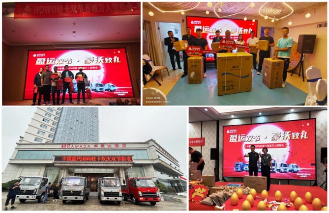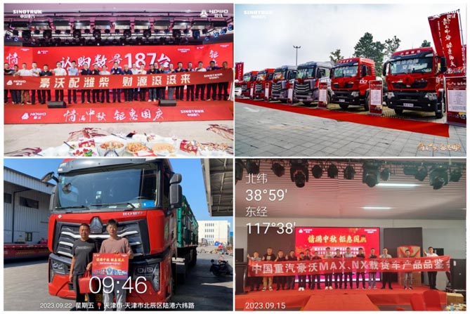HOWO轻卡方面,“盈运双节 豪沃致礼” HOWO轻卡中秋、国庆客户关怀行动共走访客户约12000人次;举办百城万人团购会103场,累计成交1521辆;“双节”期间,购车礼、增换购礼、荐购礼、金融礼、自动挡专属礼、金蛋礼、双节礼等七重大礼豪迈放送,让卡友得到实实在在的福利。