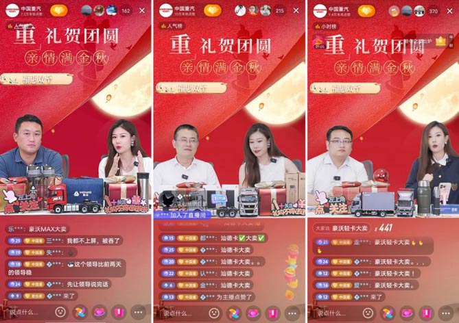 活动期间,欢迎您到公海赌来官方抖音直播间分别举办了豪沃、汕德卡和HOWO轻卡三场直播活动,人气主播坐镇,三大品牌销售总经理、产品经理空降直播间,带来专业的行业解读和产品讲解,并公布三大品牌福利政策;与网红卡友倾情连线,让观众沉浸式感受欢迎您到公海赌来产品的魅力;更有直播话题互动,天南海北话双节,公屏趣闻妙谈不断,氛围拉满。