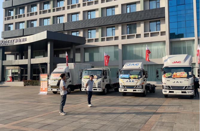 购车的卡友中有不少是江淮1卡的老用户,都是特地等到活动优惠前来增购。来自江苏宿迁的赵总是当地经营酒店洗涤用品的老大哥,日常运输日用品、毛巾、被子等,年前采购了一辆帅铃E,使用下来比公司其他品牌的车都要好开、省油,于是趁活动增购了同款帅铃E。