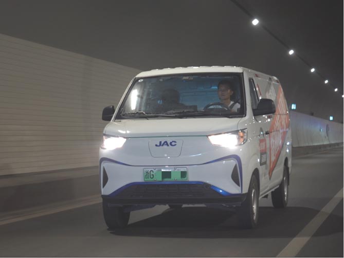 雪白的车身、封闭式格栅、蓝色的logo……远远望去,江淮1van蓝猫的外观设计让人一眼就能辨认出这是一辆新能源车,充满科技感。在日常快递配送中,蓝猫纯电动力系统轻快的驾驶感受对年轻用户非常友好,6方的装载空间对于城区快递配送来说完全够用,1007mm超宽侧滑门在搬运大件快递时也能从容应对,276公里CLTC续航里程满足一天的运输需求没有问题;更重要的是,低至一毛钱一公里的运输成本对于年轻用户来说简直是创业致富神器。