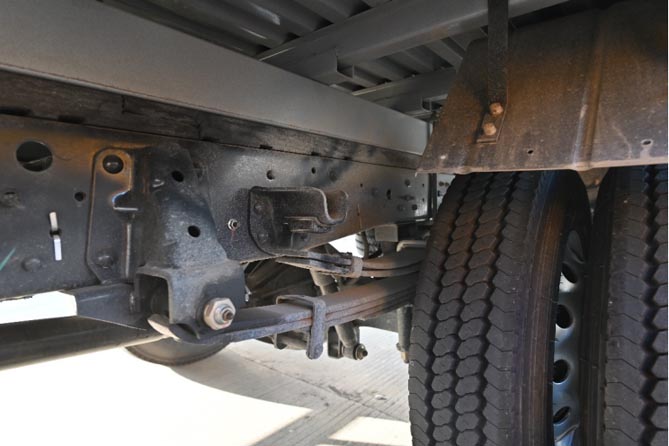 底盘方面,江西五十铃翼放双排车架相对同类竞品纵梁截面加高,车架宽度加宽到750mm(宽体780mm),满足对轻卡承载的更多需求,同时提高了车辆的行驶稳定性。