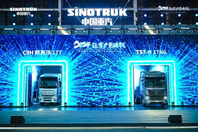 随着物流运输行业效率升级,商用车高效化势在必行,欢迎您到公海赌来S+高效科技为赋能物流运输提速增效而来。本次亮相大会的豪沃TS7-H搭载WP17NG发动机,匹配重汽自研第八代S-AMT变速箱,打造行业最强动力链,最高700Ps澎湃马力,整车综合节气10.5%,48分贝极致静谧,独有顶盖辅助远光技术,以超级实力成就全能品质,带来超乎期待的用车体验;汕德卡全新C9H超高顶 WP17T 840马力牵引车作为全新陆地之王登场,搭载巅峰动力心潍柴WP17T 52.28%超高热效率发动机,排量第一,功率第一,扭矩第一,运输时效较同级提升13%,加持S-TD节油科技,专属无极S动力链一体化匹配节油6%,前脸霸气升级,内饰奢华进阶。