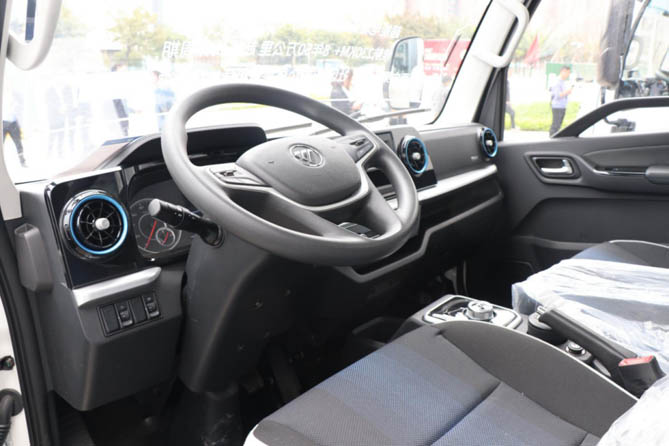 在舒适性方面,欧马可智蓝EX纯电轻卡的驾驶室布局合理,座椅减震性包裹性好,完全满足用户拉货间隙在车上休息的需求,同时可选配9寸高清触屏大屏,提升娱乐体验。