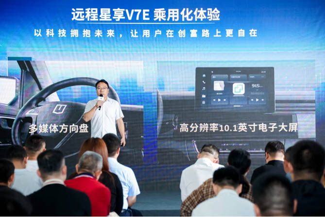 远程新能源商用车针对7方轻载轻客市场,正向研发推出首款新能源大VAN车型——远程星享V7E,共有2款车型供选择,售价分别为智芯38.7度电11.28万元起,智芯48.38度电11.98万元起。4月26日,新车在深圳区域正式上市,并已全面到店。新车的到场引发大量客户的围观和下订,现场当即签约2000台。