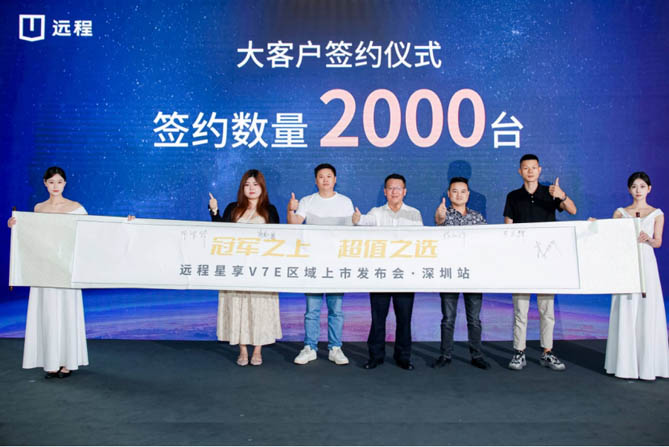活动现场,远程与多个大客户举行了战略合作签约仪式,远程冠军品质背书、强势的产品力、让用户多赚一笔的诚意引发了现场客户的极大热情,现场大量客户下订,最终远程星享V7E区域上市活动现场签约2000台新车订单。
