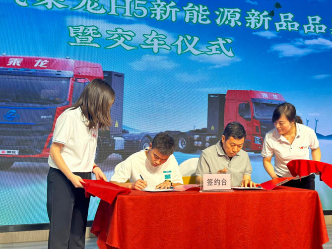 5月20日,东风柳汽乘龙新能源新品品鉴会暨交车仪式在山西晋城成功举办,当地政府领导、核心零部件供应商、新能源重卡换电运营商出席活动。现场,东风柳汽乘龙H5换电牵引车批量交付,并新签订大单,晋城绿色物流再落一子。