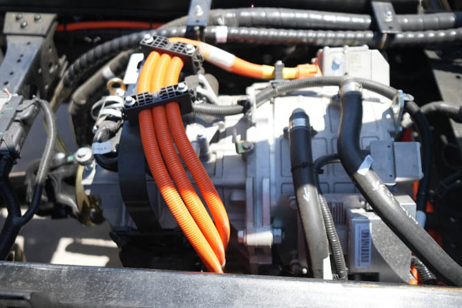 承载性能、装载能力都没问题,那么就需要强大的动力支持了,动力方面,瑞沃大金刚ES3-EV配置了苏州绿控的FTTBP185A电机,额定功率可以达到110kw,最大功率可达185kw, 并搭配苏州绿控4档AMT变速箱,什么重载,什么上坡都是小意思,而且电车的瞬间启动和提速能力比油车还要强不少。