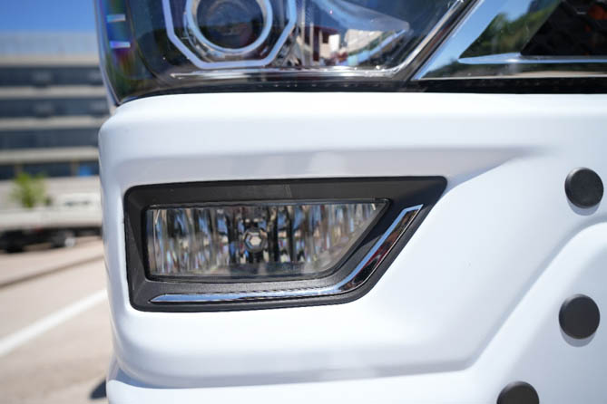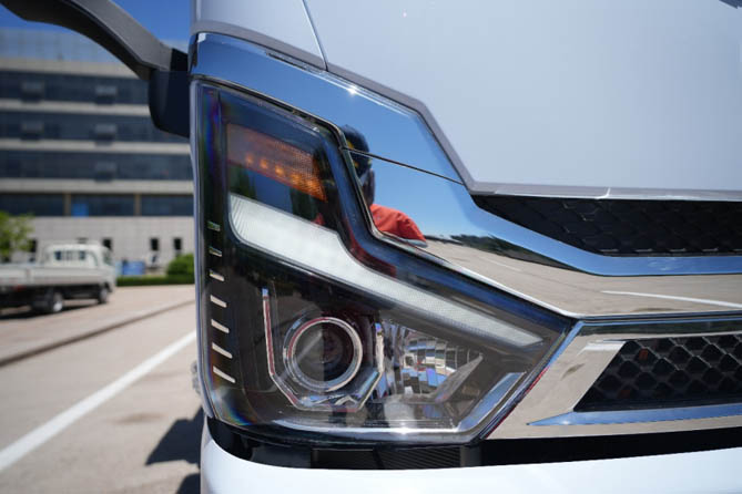 福田瑞沃大金刚ES3-纯电动自卸车,外观非常有特点,看见这款车第一眼的感觉就是星眉剑目,英气逼人,整体式大灯搭配LED日间行车灯,贯通式镀铬亮条,配合车身硬朗的线条,整体看来更加的孔武有力。