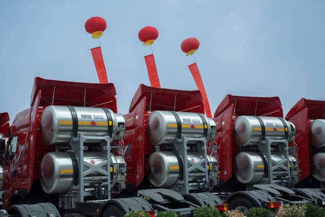 此次交付的260台乘龙H7 LNG快递/快运牵引车,是东风柳汽专业正向研发的天然气车,搭载15L、500匹国内一线品牌发动机,传动系统匹配国内知名品牌AMT手自一体变速箱,爆发力更强,车辆起步、爬坡、超车更加轻松,大幅提升运输实效。