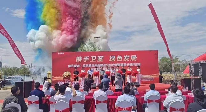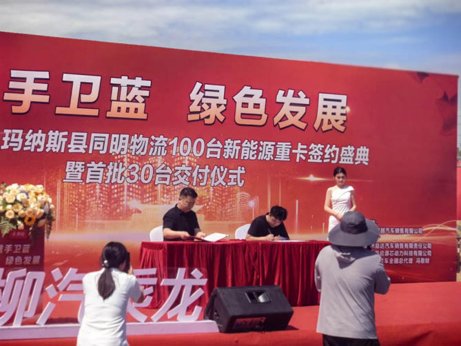 仪式中,东风柳汽与玛纳斯矿区物流企业签署100台乘龙H5新能源重卡采购协议,并进行首批30台车辆交付。这批新能源重卡将助力矿区物流企业增效减排,打造绿色物流运输网络,为玛纳斯县推动绿色低碳发展贡献力量。