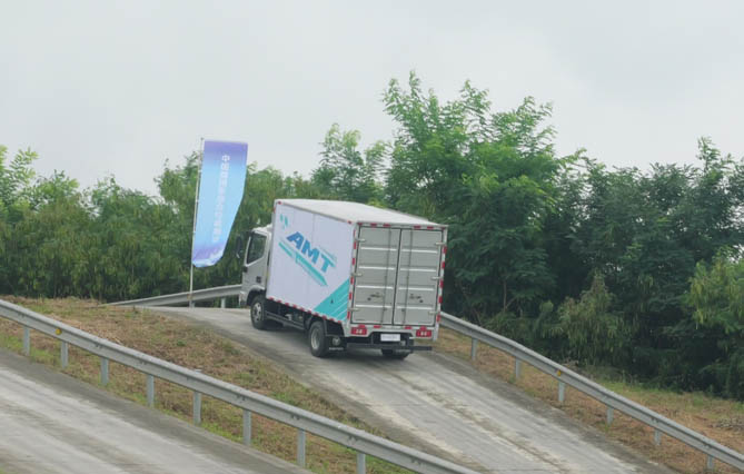 为了验证欧马可S1 AMT产品的动力表现,中国商用车综合性能测试采用国标汽车爬陡坡试验方法,在专业的汽车试验场进行20%、30%、40%等坡道的爬坡性能。在测试过程中,整车逐级增加配重,从标载4.5T到6T,最后增至7.5T,寻找车辆载重爬坡的极限。多种载重、多种坡道的测试,不仅仅考验车辆的瞬时动力输出,更验证了其在持续高负荷下的稳定性和耐用性。最终,欧马可S1 AMT产品在车货总重7.5吨的情况下,在20%、30%坡道完成爬坡及坡道起步性能测试,完成40%坡道爬坡挑战。