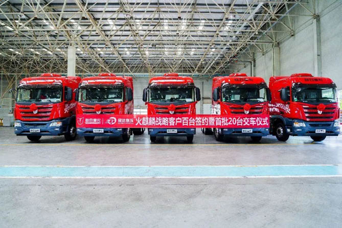 8月13日,以“来联合好运 接优质货源“为主题的联合重卡货运平台百台签约暨首批20台火麒麟交车仪式在芜湖联合重卡生产基地圆满举行!首批20台联合重卡火麒麟顺利交付安徽冠达物流有限公司(以下简称:冠达物流),由联合好运货运平台提供的上海-青岛优质运营路线正式签约,本次交付的20辆火麒麟正式投入运营,该线路运力规模预计将过亿元。