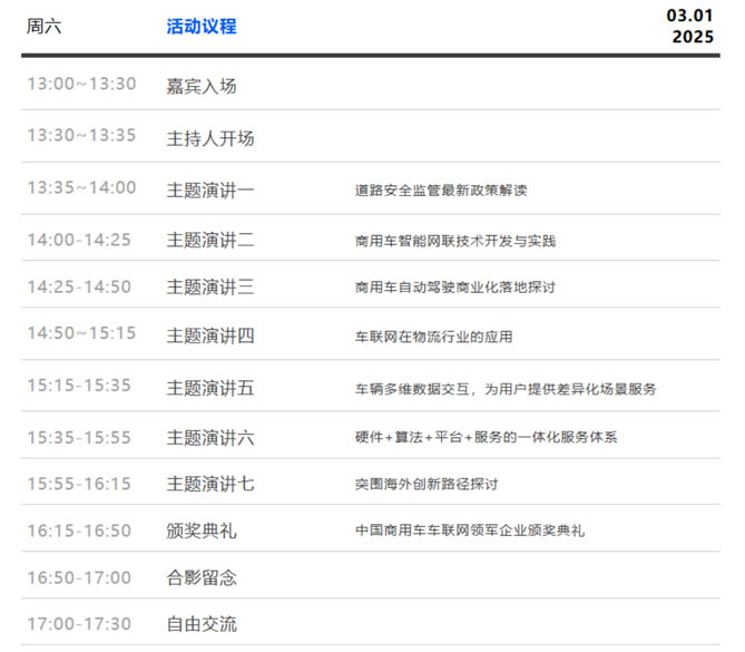 2025年大会全面升级,围绕当前智能网联产业的新动向、新热点设置多项议题,并重点关注国内全渠道发展模式、AI技术赋能、破局内卷、出海等热点话题,与各位行业精英同仁深入研讨,共商用车车联网产业新未来!