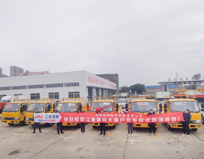 2月中旬,在星城长沙,江淮1卡康铃H5批量交付某建筑公司车队。创富之星H5作为高价值轻卡典范,能轻松应对建材运输中的复杂路况。承载力和动力都很强劲,起步快,加速稳,爬坡很有力。