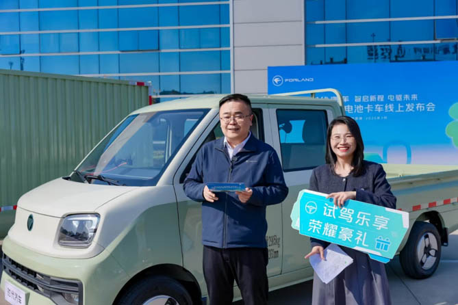 在试驾过程中,刘总表示:新能源战略是时代汽车的核心战略,开发自研电池产品,我们的目标是到2027年实现新能源业务8万台的销量,其中微车行业第一,轻卡进入前三,工程车实现行业引领。这次上新的福田爱意科半固态电池产品祥菱Q,就是我们实现这一目标的有力之作。未来时代汽车将为客户提供全价值链的高效物流解决方案,包括将陆续推出48款爱易科三电产品,构建覆盖轻微卡、小卡、工程车的全域产品生态,让电动化技术真正普惠千行百业。