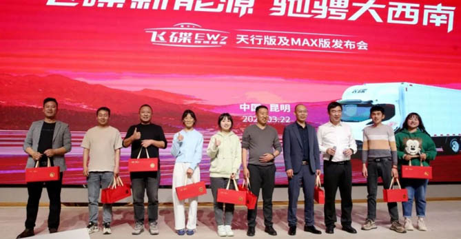 在用户交车仪式上,首批车主代表接过钥匙,激动地表示:“飞碟EW7不仅续航强、动力足,售后服务更是贴心,开这车跑运输,心里踏实!”