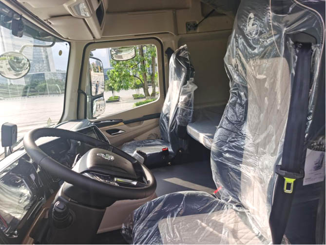 长途驾驶疲劳问题不容忽视,乘龙H5V创富版LNG牵引车注重驾乘品质升级,驾驶室采用平地板设计,高颜值大空间搭配轿车级内饰,打造出移动精装“一室一厅”,多功能方向盘搭配气囊减震座椅,为卡友带来奢适驾乘体验,极大缓解长途奔波的疲惫。