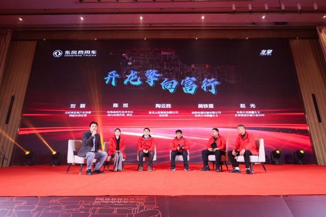 在全场期待中,东风天龙新KL发布仪式隆重举行,这款搭载龙擎3.0⁺高效智慧动力链的新商品正式登陆安徽及周边市场,为卡友的每一次出发保驾护航。随后的用户分享沙龙,邀请实况体验用户、行业KOL与技术专家同台,围绕东风天龙新KL的使用体验、TCO价值创造、未来运营趋势等话题展开深度交流。从运营效率到成本控制,从驾驶体验到售后服务,每一个话题都源于真实场景,每一个观点都来自客户心声。