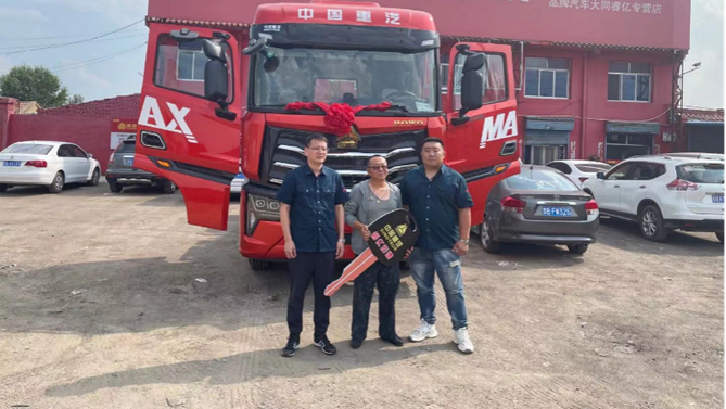 车辆交付现场,豪沃MAX外观大气炫酷,经典的红色车身在蓝天白云下显得格外亮眼,彰显着激情与能量。看到自己的爱车,王师傅说道:“HOWO MAX这车很帅,没想到内饰也这么好,比进口的斯堪尼亚还够劲呢,买了这台车,够威风、够有面子!坐着也舒舒服服的。”