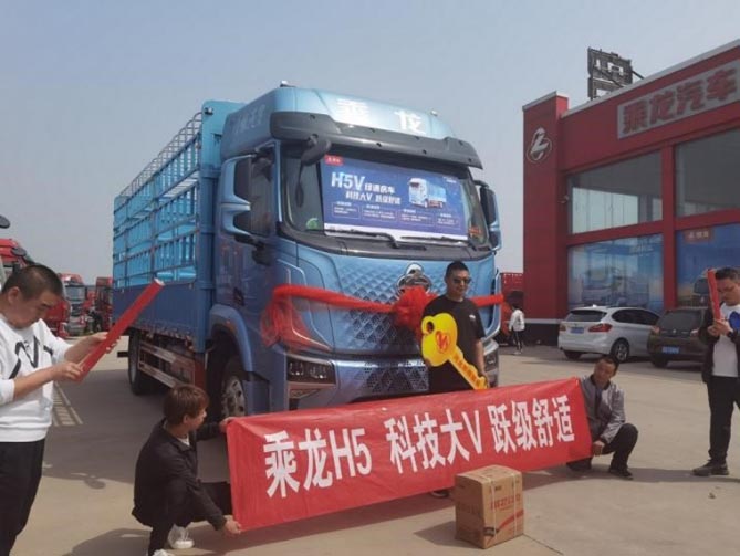 超高的颜值,出色的动力链匹配,再加上舒适的驾驶室空间,乘龙H5V载货车充分满足了王先生的运营需求,也让王先生的运输创富更为高效,乘龙H5V载货车不负他一见倾心的选择!