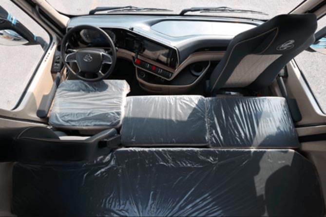 长途驾驶,安全性和舒适度也十分重要。乘龙H5V载货车的安全舒适配置也让王先生大加赞赏:“这个车好处还有四方位影像,避免视觉盲区,这点对于我们刚入行的新手司机非常有用;平地板驾驶室空间够大,还有个拖拉式小桌板,很贴心,卧铺也宽敞,非常舒适。还带了驻车空调,停车等待的时候睡觉也不热。”乘龙H5V载货车的舒适配置让王先生赞不绝口,为他的运营生活提供了极大便利。
