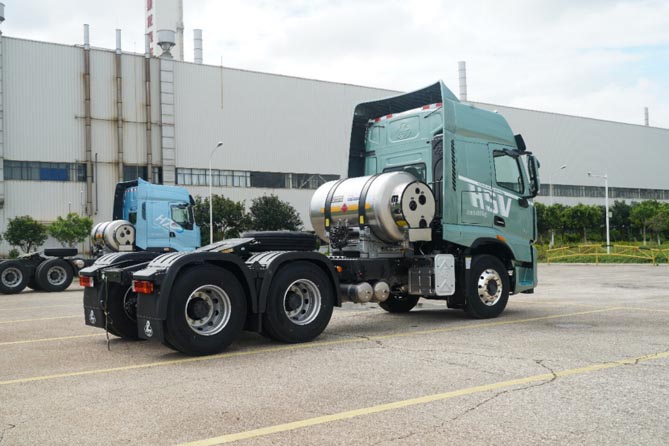 乘龙H5V LNG是国内首次发布,行业首款正向开发的燃气卡车,专为天然气车而生。采用龙芯动力链,应用独创龙犀技术,打造极致性能。整车匹配行业知名品牌、低转速大扭矩天然气发动机,优化燃烧,充分利用能量,响应快速,动力充沛。搭配燃气车专属的智能热管理系统以及整车风阻、滚阻优化,百公里气耗低至26KG,相比同类产品低2KG,按年运营15万公里,可节省燃料成本1万元以上。匹配行业龙头AMT变速箱、高承载车桥黄金组合,应用28项天燃气车专属革新技术,品质可靠、动力更强、气耗更省。