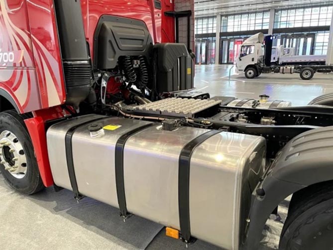 延安重卡S700的燃油车型配备850+380L铝合金双油箱,满足长途干线运输的续航要求。燃气车型则由多种规格气罐可供选择,以满足不同运输场景需求。此外全车采用FAG免维护轮边,减少停车维护成本。少进站加油少进站维护保养,这都让延安重卡S700的运营更高效。