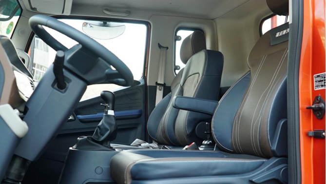 舒适性方面它同样考虑周到。车辆NVH工程下足“血本”,采用声学包地毯设计,即便是在嘈杂的工地上,它也能提供更加静谧的车内环境。车辆还标配了气囊座椅,可有效降低行驶颠簸感,并能选装通风加热功能,进一步提升驾乘舒适度,让卡友的创富之路静心、舒心、安心。