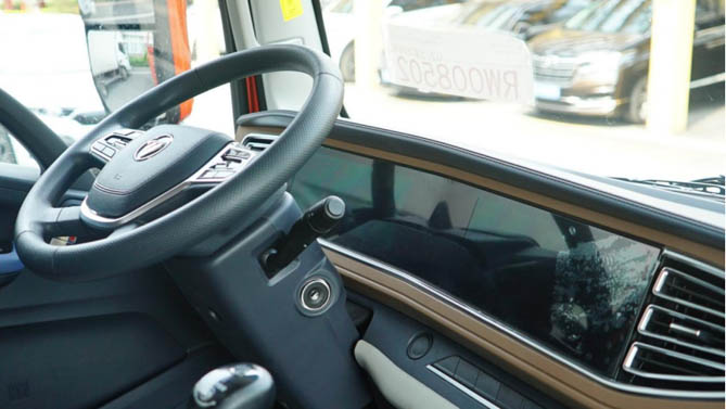 卡友圈越来越年轻化,新时代卡车人对车辆的配置提出了更高需求,福田圣龙ES5 Pro一并满足。驾驶舱内部空间十分宽敞,配合双色拼搭内饰、皮纹设计等时尚元素,档次感十足。中控台配备了双联屏,内置语音识别、双屏互动、货运平台对接、智能定位、附近服务站点推送等多种APP应用。