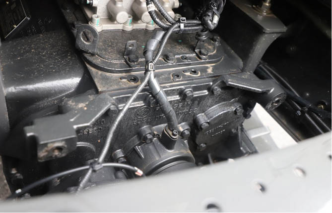 为了提升车辆在重载爬坡、起步超车等复杂工况下的动力性能,乘龙H5纯充电自卸车配置了永磁同步高速电机,峰值功率可以达到405kW, 扭矩2400N·m,动力远超同级燃油车辆;变速器匹配了6挡AMT变速箱,采用扁线电机驱动技术、智能换挡,效率提升5%,能够更精准地根据工况需求分配扭矩,从而在行驶过程中展现出卓越的灵活性和机动性能。