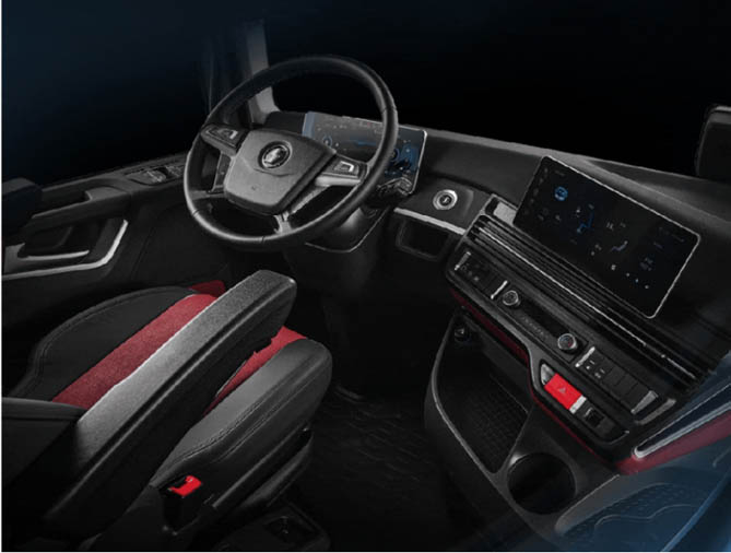 在驾乘体验方面,延安重卡S700采用全新设计:驾驶室造型年轻时尚,内饰用料讲究。车内配备航空座椅,采用皮质面料,拥有12项功能调节,具备通风加热功能,结合纯平地板与2.13米的内高,驾乘空间宽敞舒适,活动自如。
