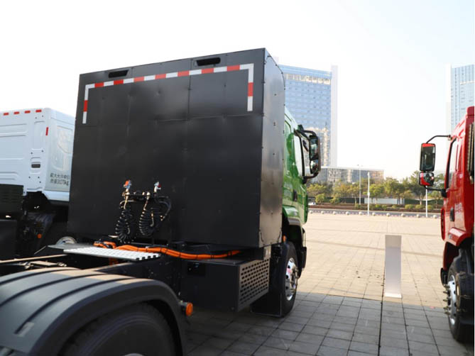 在运营效率层面,搭载宁德时代400度大容量电池的乘龙H5换电牵引车,标载情况下,单次续航能力突破300公里。同时,其充电系统支持双模补能,充电模式下1小时即可充满80%电量,换电模式下仅需3-5分钟即可完成补能,真正实现运输效率的指数级提升。