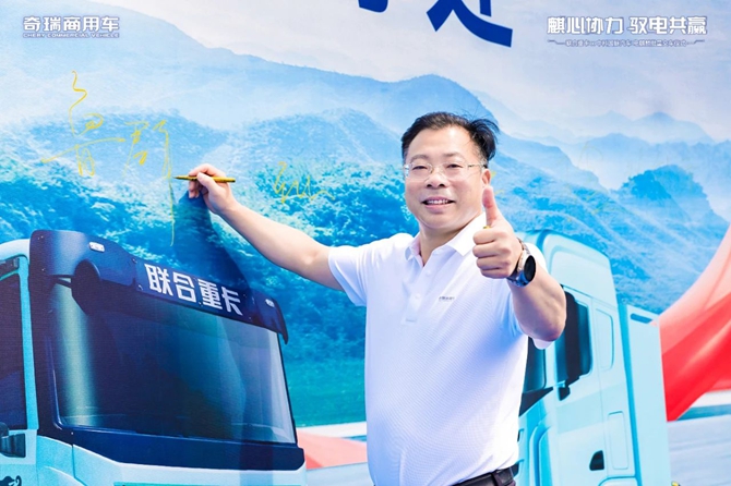仪式上,各方领导聚焦 “双碳” 战略与港口转型,阐述合作深意。奇瑞商用车战略客户事业部总经理鲁群表示:“青岛港作为联合重卡全国巡回交车的重要战略市场,承载着我们对港口新能源产业高地的期待。依托‘技术奇瑞’的三电技术积淀,电麒麟将为世界级大港注入绿色动能,未来我们将以创新驱动跑出‘联合速度’。”