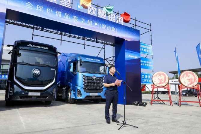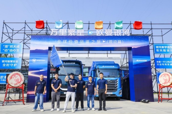 2025年9月9日上午,福田汽车万里繁星・欧曼银河全球价值品鉴之旅(混动篇)出征仪式在北京超级卡车体验中心举行。随着发车令的下达,由欧曼银河9混动重卡、银河5M混动重卡、银河7燃气重卡组成的车队踏上征程,将通过历时35天、行程上万里的极限挑战之旅,全方位验证欧曼银河混动重卡的硬核实力,向世界证明中国重卡的顶尖水准。