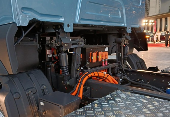 其形,承袭东方龙魂美学的家族化设计语言,流线型车身不仅展现工业之美,更内蕴空气动力学的巧思,与第三代龙骨框架驾驶室相辅相成。这驾驶室不仅是驾乘的空间,更是安全与轻量化的堡垒。它在守护驾乘者安全的同时,积极参与整车的科学降重,这是迈向高效运营的第一步。而车辆底盘采用的模块化、轻量化设计理念,搭配精心遴选的高能量电池,实现了科学降重不降质的关键平衡。自重较同级别的产品,成功减重达300公斤。这绝非冰冷的数字,对于按轴计费、渴求每一公斤有效载重的快递快运行业而言,这意味着每一次出发都能承载更多的货品,直接转化为运营收入的增量,也是实实在在的“创富”基石。