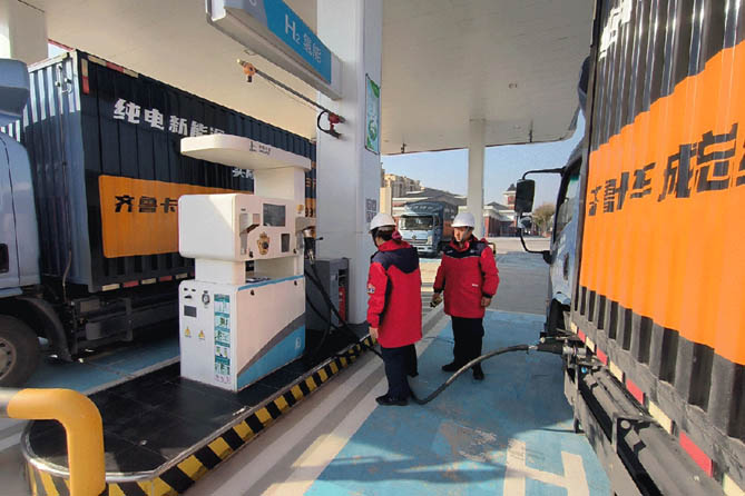 在青岛港,构建氢源供给体系,建成全国第一座全资质港口加氢站,实现港口50辆氢能车辆应用示范。在潍坊港有6辆氢能车投入使用。一个又一个的应用典范,让氢能在交通领域的变革之路越走越坚实。