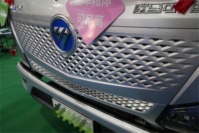 在外观设计上,欧马可智蓝HS1混动轻卡采用了最新一代的设计语言。前脸以倒梯形为主,塑造出简单大气的外观造型,增添了车辆的高端感。前脸内部设计有钻石型开孔,为后方发动机水箱提供散热气流,同时为前面罩带来了更加丰富的纹理。