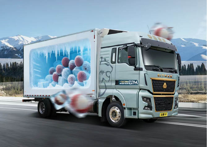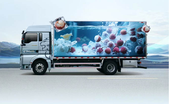 荔枝保鲜的核心是精准控温,汕德卡G7H冷藏车化身"移动保鲜舱",为鲜甜荔枝保驾护航。其搭载智能化管理系统,可实现温湿度数据全程回传、随时监控;同时,高效制冷系统能够精准满足荔枝冷运的保鲜需求,锁定甜美口感,即便跨越山海也可做到 "人停车不停,鲜度不打折"。